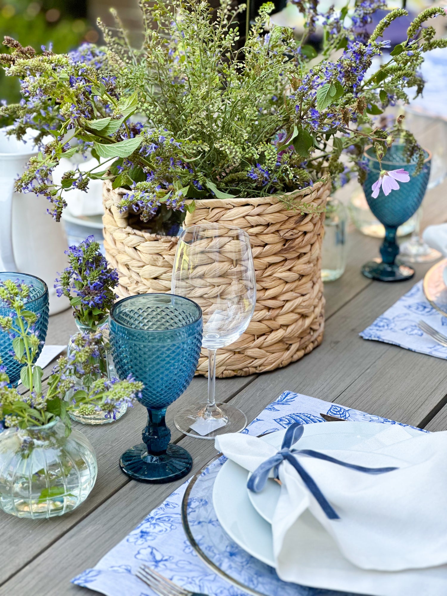 Esta mesa en tonos azules con flores salvajes es ideal para cualquier festeje como Primer Comunión, Bautizo o cumpleaños. Sensación de campo y frescura en tu casa.